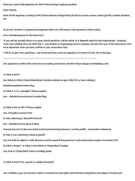 Biw Fixture Design Interview Questions . It varies from role to role based in the experience level. I recently joined this forum.
