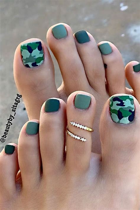 Purple + green nail art #14. Here’s another polka dot design that we can get behind. Doing your toenails is part of fashion and hygiene, hence, it must be treated with the same care and meticulousness as the hair and outfit. We're talking about cool camo nail art.